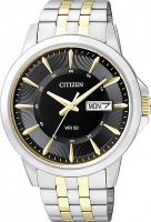 Мужские кварцевые часы Citizen Basic BF2018-52E с механизмом калибра 1502 оснащены функцией отображения даты и дня недели. Стрелки и метки с люминесцентным покрытием обеспечивают хорошую видимость в темноте. Стальной браслет с частичным PVD-покрытием дополняет дизайн модели. Водонепроницаемость WR50 (5 атмосфер) позволяет не снимать часы во время мытья рук или под дождем.
