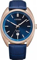 Мужские наручные часы Citizen Basic BI5093-01L. Точный кварцевый механизм с аналоговой индикацией. Ремешок изготовлен из кожи. Браслет из нержавеющей стали. Прочное, устойчивое к царапинам минеральное стекло защищает часы от повреждений. На циферблате отображается текущее число месяца. Часы являются водонепроницаемыми до 5 Бар. Цвет циферблата: Розовое золото. Цвет корпуса: Синий. На стрелки и отметки нанесен светонакопительный состав, благодаря этому считывать информацию с циферблата возможно и в темноте. Толщина: 10 мм. Гарантия: 2 года.