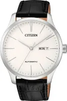 Мужские наручные часы Citizen Automatic NH8350-08B. Механические с автоподзаводом. Пружина механизма заводится автоматически благодаря естественным движениям владельца в процессе ежедневной носки часов. Ремешок изготовлен из кожи. Браслет из нержавеющей стали. Прочное, устойчивое к царапинам минеральное стекло защищает часы от повреждений. На циферблате отображается текущее число месяца и день недели. Часы являются водонепроницаемыми до 5 Бар. Цвет циферблата: Серебристый. Цвет корпуса: Белый. Толщина: 11 мм. Гарантия: 2 года.