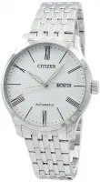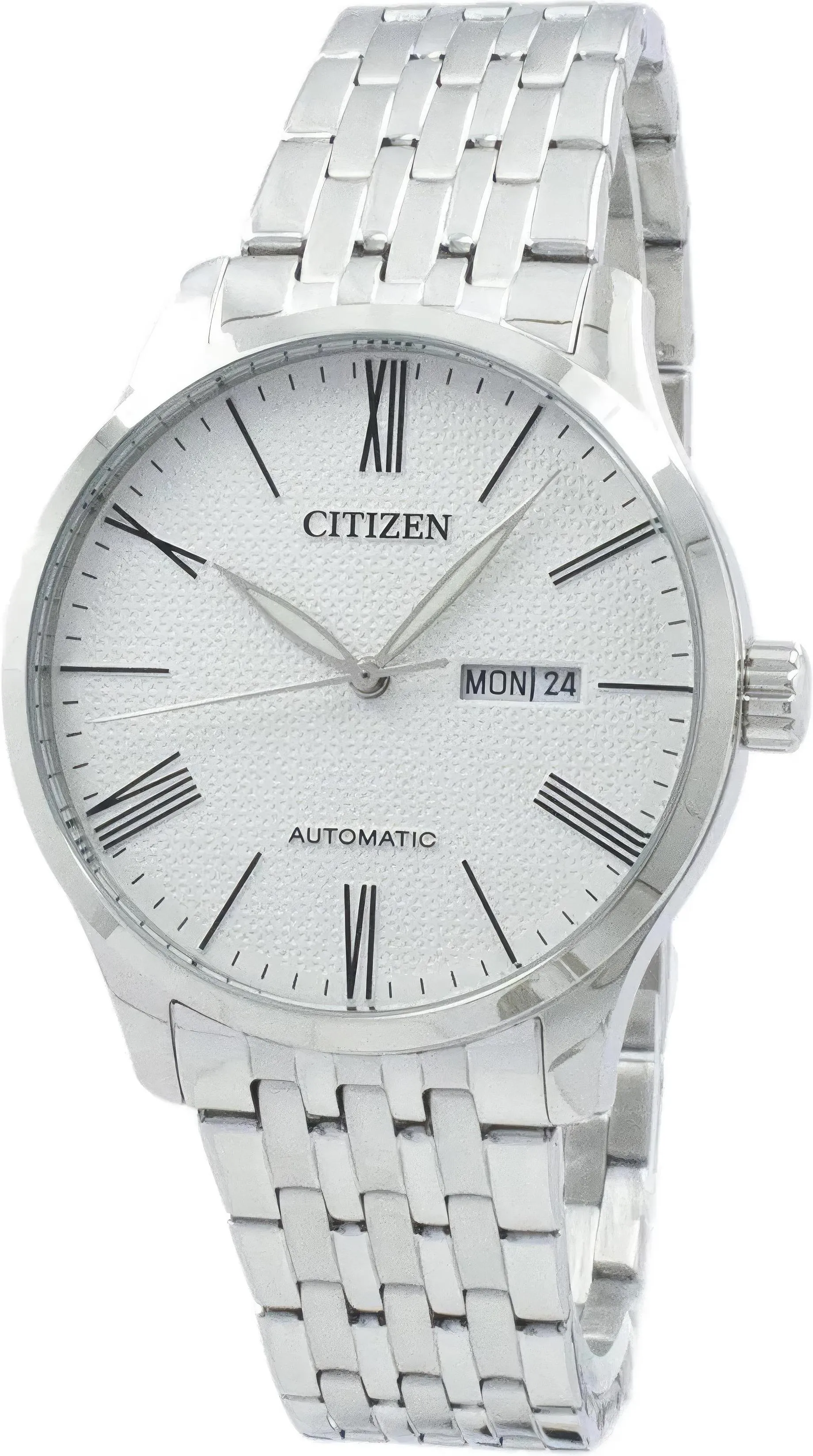 Мужские наручные часы Citizen Citizen Automatic NH8350-59A. Механические с ручным подзаводом. Корпус изготовлен из высококачественной нержавеющей стали 316L с высокими антикоррозийными свойствами. На стрелки и отметки нанесен светонакопительный состав, благодаря этому считывать информацию с циферблата возможно и в темноте. На циферблате отображается текущее число месяца и день недели. Браслет из нержавеющей стали. Прочное, устойчивое к царапинам минеральное стекло защищает часы от повреждений. Часы являются водонепроницаемыми до 5 Бар. Цвет корпуса: Серебристый. Цвет циферблата: Белый. Ширина (с заводной головкой): 40мм. Толщина: 11мм. Гарантия: 2 года.