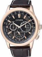 Мужские наручные часы Citizen Eco-Drive Chrono BU2023-12E. Точный кварцевый механизм с аналоговой индикацией. Ремешок изготовлен из кожи. Функция хронографа. Отображение времени возможно в 12-часовом или 24-часовом формате. Браслет из нержавеющей стали. Прочное, устойчивое к царапинам минеральное стекло защищает часы от повреждений. На циферблате отображается текущее число и месяц. Часы являются водонепроницаемыми до 10 Бар. Цвет циферблата: Желтое золото. Цвет корпуса: Черный. На стрелки и отметки нанесен светонакопительный состав, благодаря этому считывать информацию с циферблата возможно и в темноте. Толщина: 13 мм. Гарантия: 2 года.