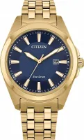 Мужские наручные часы Citizen Eco Drive BM7532-54L. Точный кварцевый механизм с аналоговой индикацией. Браслет из нержавеющей стали. Солнечная батарейка. Солнечная подзаряжающаяся батарейка обеспечивает питание часов для работы. Браслет из нержавеющей стали. Сапфировое стекло. Искусственно изготовленное стекло с высокой прочностью и устойчивостью к царапинам. На циферблате отображается текущее число месяца. Часы являются водонепроницаемыми до 10 Бар. Цвет циферблата: Желтое золото. Цвет корпуса: Синий. На стрелки и отметки нанесен светонакопительный состав, благодаря этому считывать информацию с циферблата возможно и в темноте. Толщина: 9 мм. Гарантия: 2 года.