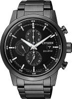 Мужские наручные часы Citizen Eco Drive CA0615-59E. Точный кварцевый механизм с аналоговой индикацией. Браслет из нержавеющей стали. Функция хронографа. Солнечная батарейка. Солнечная подзаряжающаяся батарейка обеспечивает питание часов для работы. Отображение времени возможно в 12-часовом или 24-часовом формате. Браслет из нержавеющей стали. Прочное, устойчивое к царапинам минеральное стекло защищает часы от повреждений. На циферблате отображается текущее число месяца. Часы являются водонепроницаемыми до 10 Бар. Цвет циферблата: Черный. Цвет корпуса: Черный. На стрелки и отметки нанесен светонакопительный состав, благодаря этому считывать информацию с циферблата возможно и в темноте. Толщина: 11 мм. Гарантия: 2 года.