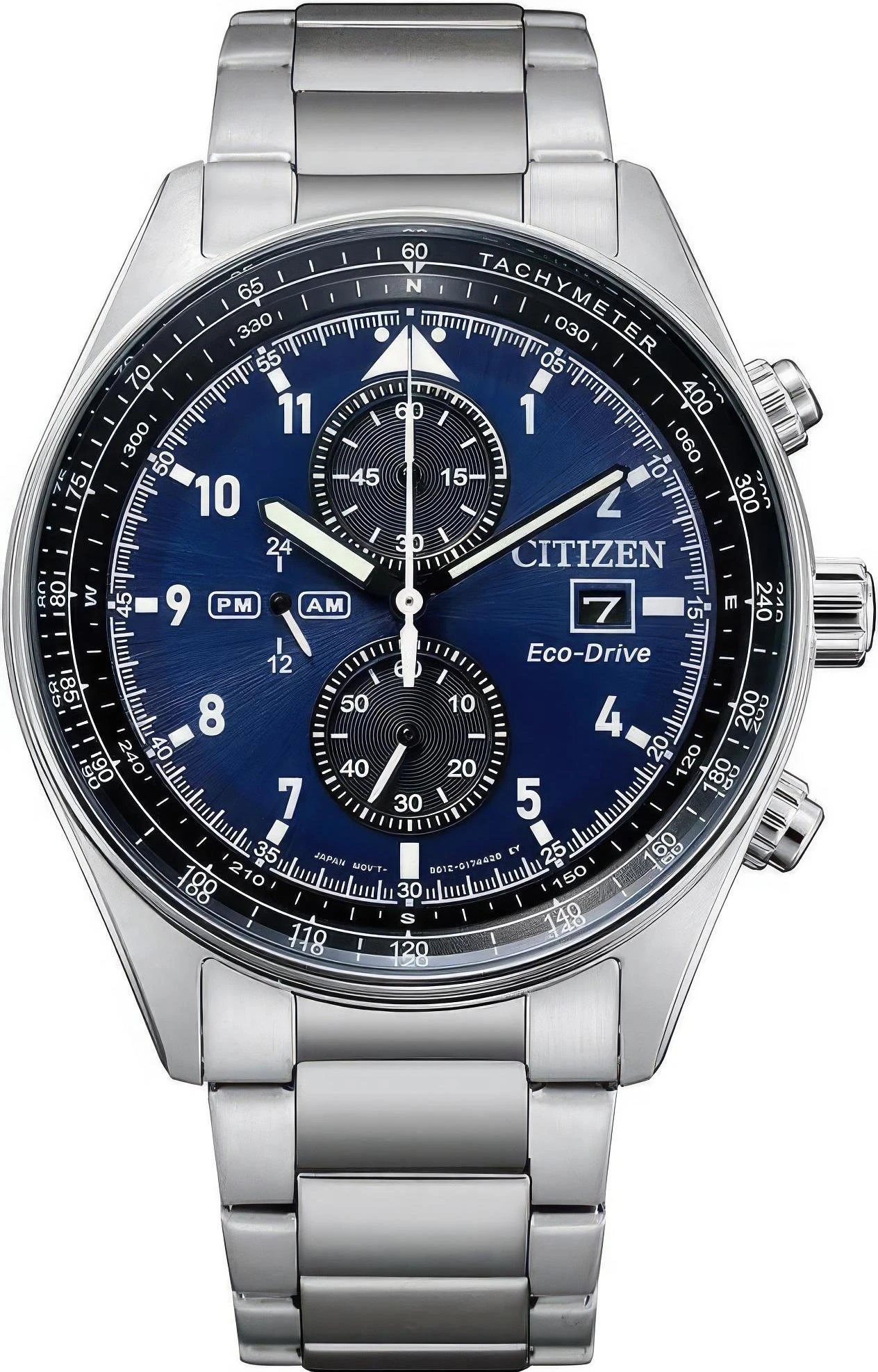 Мужские наручные часы Citizen Eco Drive CA0770-81L. Точный кварцевый механизм с аналоговой индикацией. Браслет из нержавеющей стали. Функция хронографа. Солнечная батарейка. Солнечная подзаряжающаяся батарейка обеспечивает питание часов для работы. Отображение времени возможно в 12-часовом или 24-часовом формате. Браслет из нержавеющей стали. Прочное, устойчивое к царапинам минеральное стекло защищает часы от повреждений. На циферблате отображается текущее число месяца. Часы являются водонепроницаемыми до 10 Бар. Цвет циферблата: Серебристый. Цвет циферблата: Черный. Цвет корпуса: Синий. На стрелки и отметки нанесен светонакопительный состав, благодаря этому считывать информацию с циферблата возможно и в темноте. Толщина: 12 мм. Гарантия: 2 года.