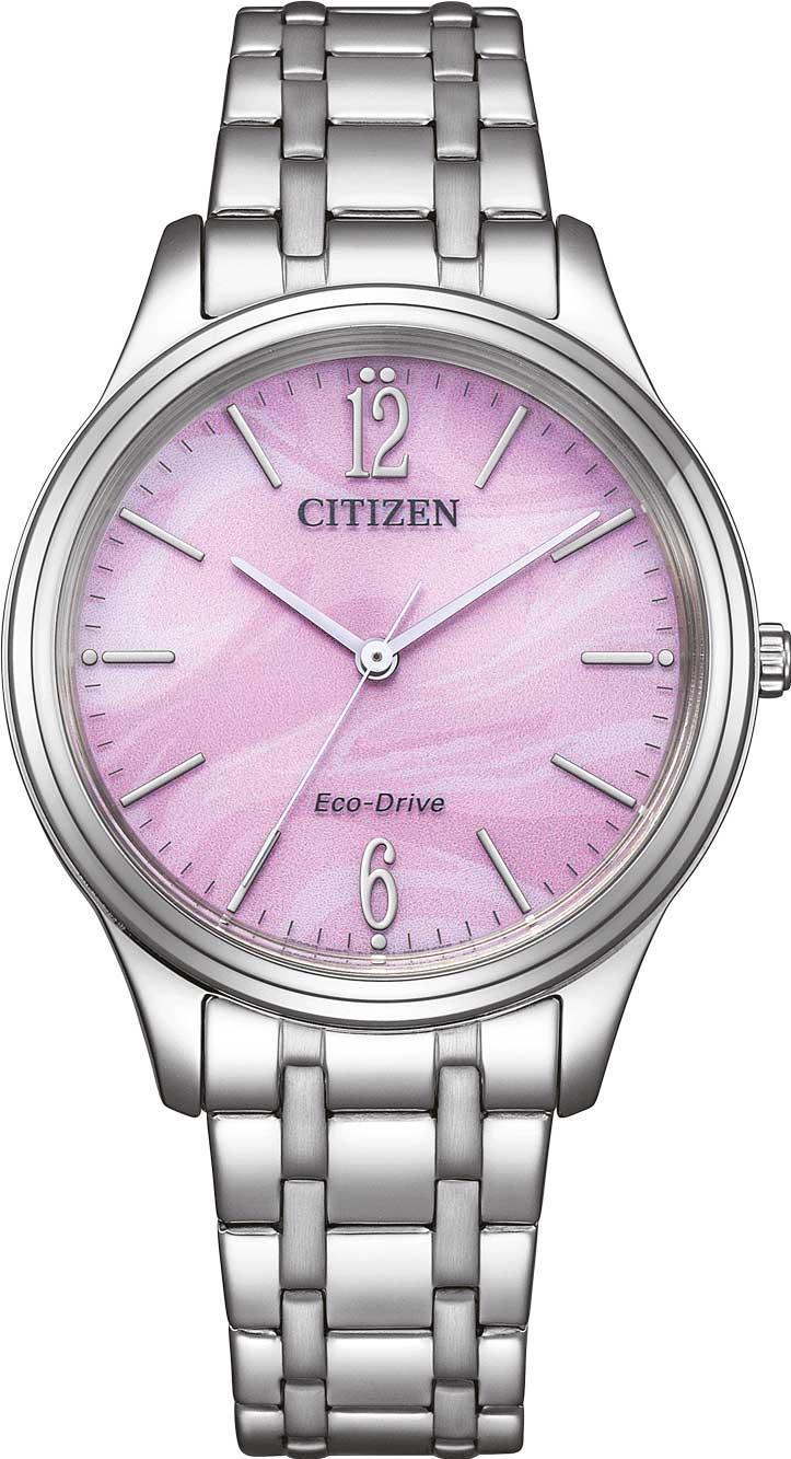Элегантные женские кварцевые часы с розовым перламутровым циферблатом оснащены центральными часовой, минутной и секундной стрелками. Циферблат украшен арабскими цифрами на 12 и 6 часах и штриховыми метками на остальных позициях. Круглый корпус из нержавеющей стали с комбинированной полированной и матовой отделкой имеет диаметр 34 мм и толщину 7,3 мм. Модель дополнена стальным браслетом с раскладывающейся застежкой с кнопкой, защищена минеральным стеклом и обладает водостойкостью WR50 для защиты от брызг и дождя.