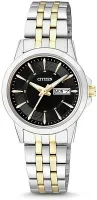 Женские наручные часы Citizen Eco Drive EQ0608-55E. Точный кварцевый механизм. Браслет из нержавеющей стали. Аккумулятор обеспечивает часы достаточным питанием приблизительно на 2 года. Корпус изготовлен из высококачественной нержавеющей стали 316L с высокими антикоррозийными свойствами. Прочное, устойчивое к царапинам минеральное стекло защищает часы от повреждений. На циферблате отображается текущее число месяца и день недели. Часы являются водонепроницаемыми до 3 Бар. Цвет циферблата: Серебристый. Цвет корпуса: Черный. Светодиодная подсветка. Толщина: 8 мм. Гарантия: 2 года.