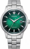 Мужские наручные часы Citizen Mechanical NK0007-88X. Механические с автоподзаводом. Пружина механизма заводится автоматически благодаря естественным движениям владельца в процессе ежедневной носки часов. На стрелки и отметки нанесен светонакопительный состав, благодаря этому считывать информацию с циферблата возможно и в темноте. Браслет из нержавеющей стали обладает высокой прочностью и износостойкостью, обеспечивая долговечность даже при активной эксплуатации. Материал устойчив к коррозии и сохраняет свой внешний вид надолго. Корпус изготовлен из высококачественной нержавеющей стали 316L с высокими антикоррозийными свойствами. Прочное, устойчивое к царапинам минеральное стекло защищает часы от повреждений. Часы являются водонепроницаемыми до 5 Бар. Цвет корпуса: Серебристый. Цвет циферблата: Зеленый. Высота (с ушками): 41 мм. Толщина: 12.6 мм. Гарантия: 2 года.