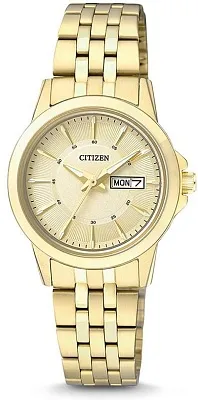 Женские наручные часы Citizen Quartz ED8184-51A. Точный кварцевый механизм с аналоговой индикацией. Корпус изготовлен из высококачественной нержавеющей стали 316L с высокими антикоррозийными свойствами. На циферблате отображается текущее число месяца и день недели. Браслет из нержавеющей стали. Прочное, устойчивое к царапинам минеральное стекло защищает часы от повреждений. Часы являются водонепроницаемыми до 3 Бар. Цвет корпуса: Серебристый. Цвет циферблата: Серебристый. Ширина (с заводной головкой): 33мм. Толщина: 14мм. Гарантия: 2 года.
