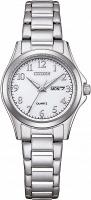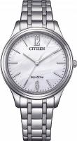 Женские кварцевые часы Citizen представлены в классическом дизайне с белым циферблатом, дополненным арабскими цифрами и серебристо-белыми стрелками. Модель с корпусом диаметром 27,5 мм и толщиной 7 мм выполнена из нержавеющей стали с серебристым покрытием и комплектуется стальным браслетом с застёжкой. Циферблат защищён минеральным стеклом, а водостойкость WR30 обеспечивает защиту от брызг и дождя.