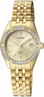 Мужские наручные часы Citizen Quartz EU6062-50P. Точный кварцевый механизм с аналоговой индикацией. Браслет из нержавеющей стали. Браслет из нержавеющей стали. Прочное, устойчивое к царапинам минеральное стекло защищает часы от повреждений. На циферблате отображается текущее число месяца. Часы являются водонепроницаемыми до 5 Бар. Цвет циферблата: Желтое золото. Цвет корпуса: Золотистый. На стрелки и отметки нанесен светонакопительный состав, благодаря этому считывать информацию с циферблата возможно и в темноте. Толщина: 9 мм. Гарантия: 2 года.
