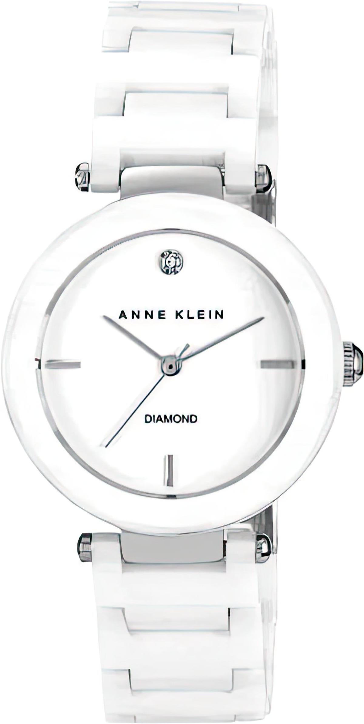 Женские наручные часы на керамическом браслете в цвет циферблата, циферблат украшен бриллиантом.