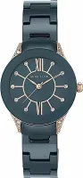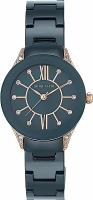 Женские наручные часы на керамическом браслете. Круглый корпус инкрустирован искусственными кристаллами. Центральные секундная, минутная и часовая стрелки. Римские 12 и 6 часов. Минеральное стекло. Точный кварцевый механизм.