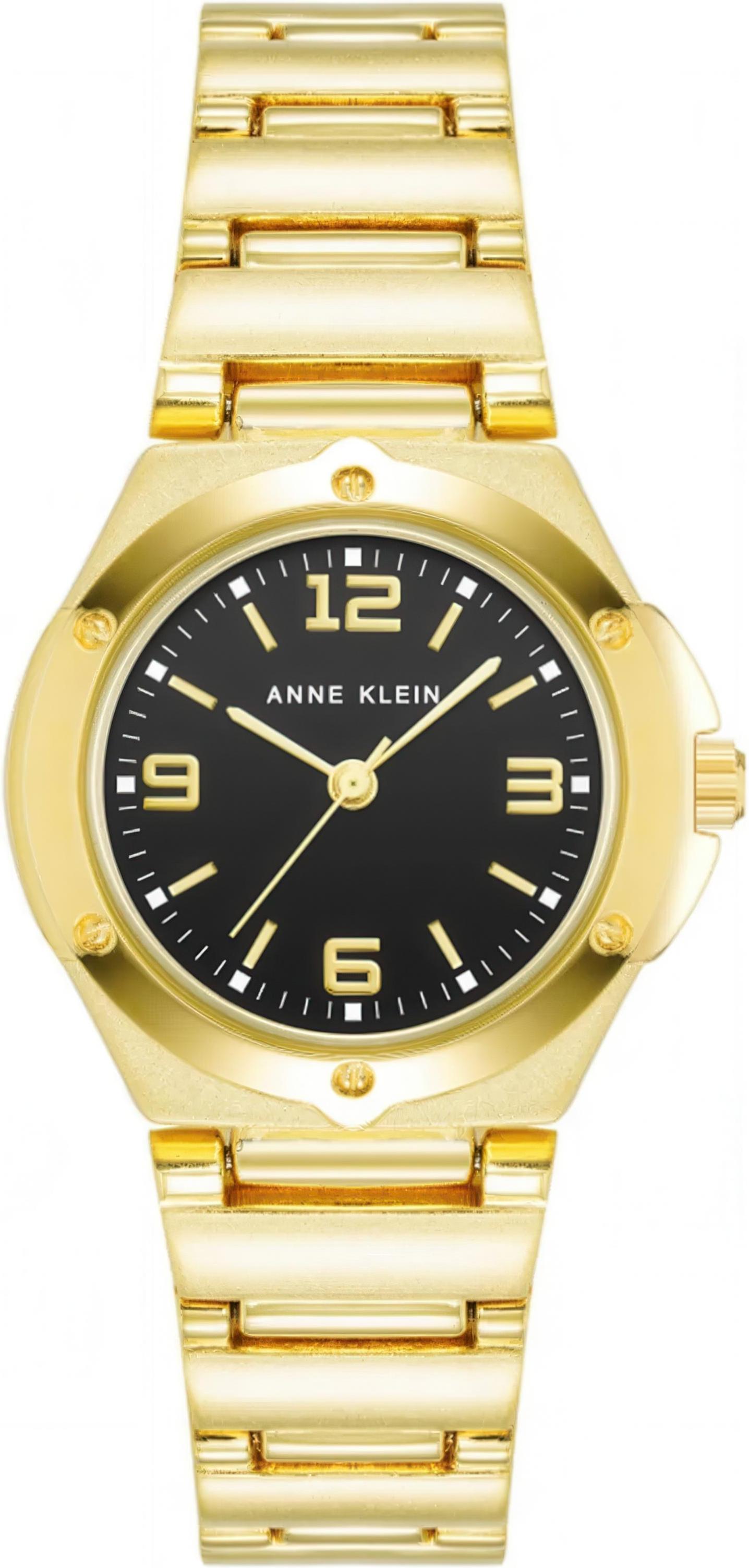 Женские наручные часы Anne Klein Metals 8654BKGB. Точный кварцевый механизм с аналоговой индикацией. Браслет из нержавеющей стали. Браслет из нержавеющей стали. Прочное, устойчивое к царапинам минеральное стекло защищает часы от повреждений. Часы являются водонепроницаемыми до 3 Бар. Цвет циферблата: Желтое золото. Цвет корпуса: Черный. Высота (с ушками): 33 мм. Толщина: 8 мм. Гарантия: 2 года.
