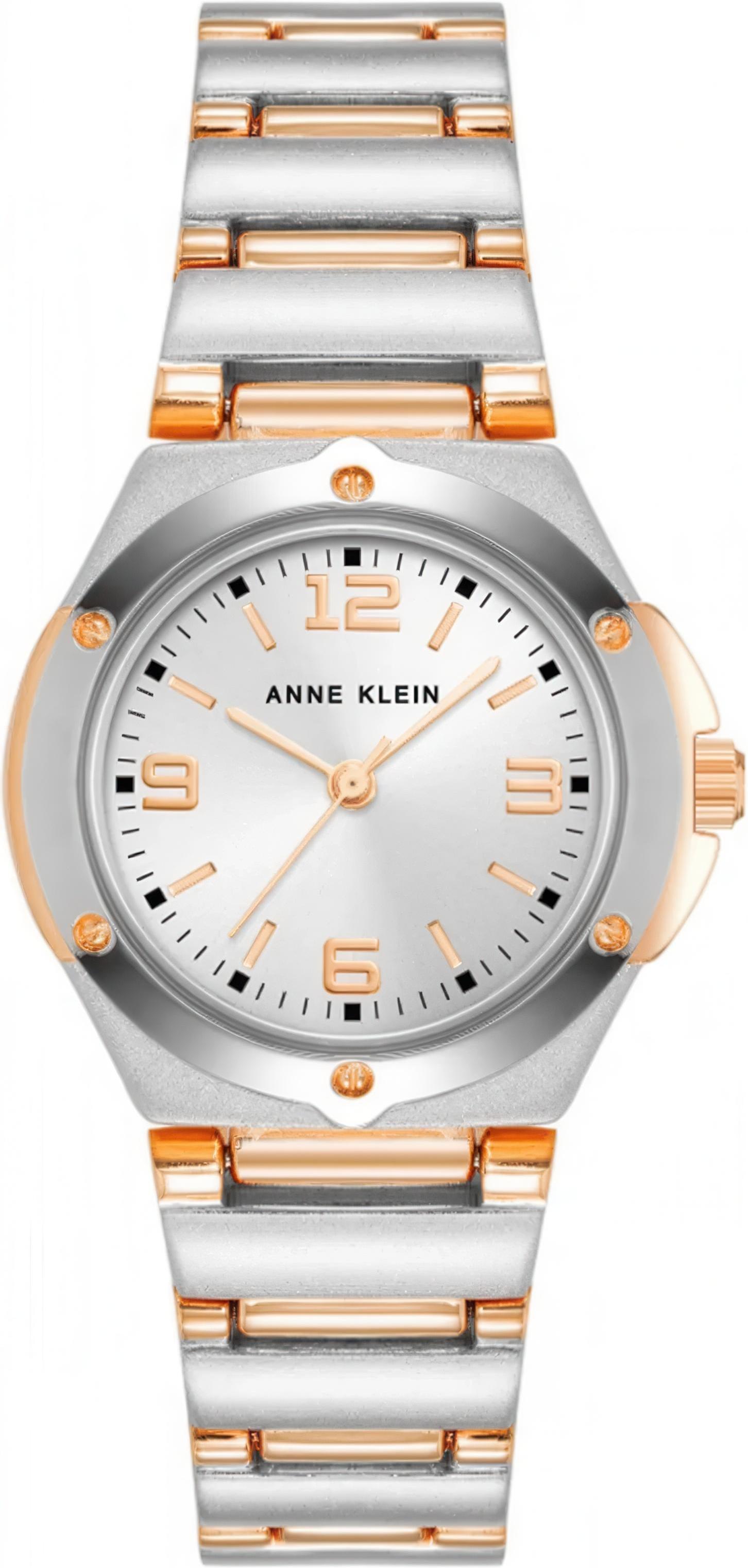 Женские наручные часы Anne Klein Metals 8655SVRT. Точный кварцевый механизм с аналоговой индикацией. Браслет из нержавеющей стали. Браслет из нержавеющей стали. Прочное, устойчивое к царапинам минеральное стекло защищает часы от повреждений. Часы являются водонепроницаемыми до 3 Бар. Цвет циферблата: Серебристый. Цвет циферблата: Желтое золото. Цвет корпуса: Белый. Высота (с ушками): 33 мм. Толщина: 8 мм. Гарантия: 2 года.