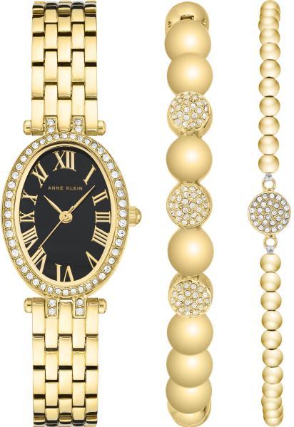 Женские наручные часы Anne Klein Box Set 3970GBST. Точный кварцевый механизм с аналоговой индикацией. Корпус изготовлен из высококачественной нержавеющей стали 316L с высокими антикоррозийными свойствами. Браслет из нержавеющей стали. Прочное, устойчивое к царапинам минеральное стекло защищает часы от повреждений. Часы являются водонепроницаемыми до 3 Бар. Цвет корпуса: Желтое золото. Цвет циферблата: Черный. Ширина (с заводной головкой): 28мм. Толщина: 7мм. Гарантия: 2 года.
