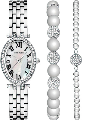 Женские наручные часы Anne Klein Box Set 3971SVST. Точный кварцевый механизм с аналоговой индикацией. Браслет из нержавеющей стали. Браслет из нержавеющей стали. Прочное, устойчивое к царапинам минеральное стекло защищает часы от повреждений. Часы являются водонепроницаемыми до 3 Бар. Цвет циферблата: Серебристый. Цвет корпуса: Белый. Цвет корпуса: Перламутровый. Толщина: 9 мм. Гарантия: 2 года.