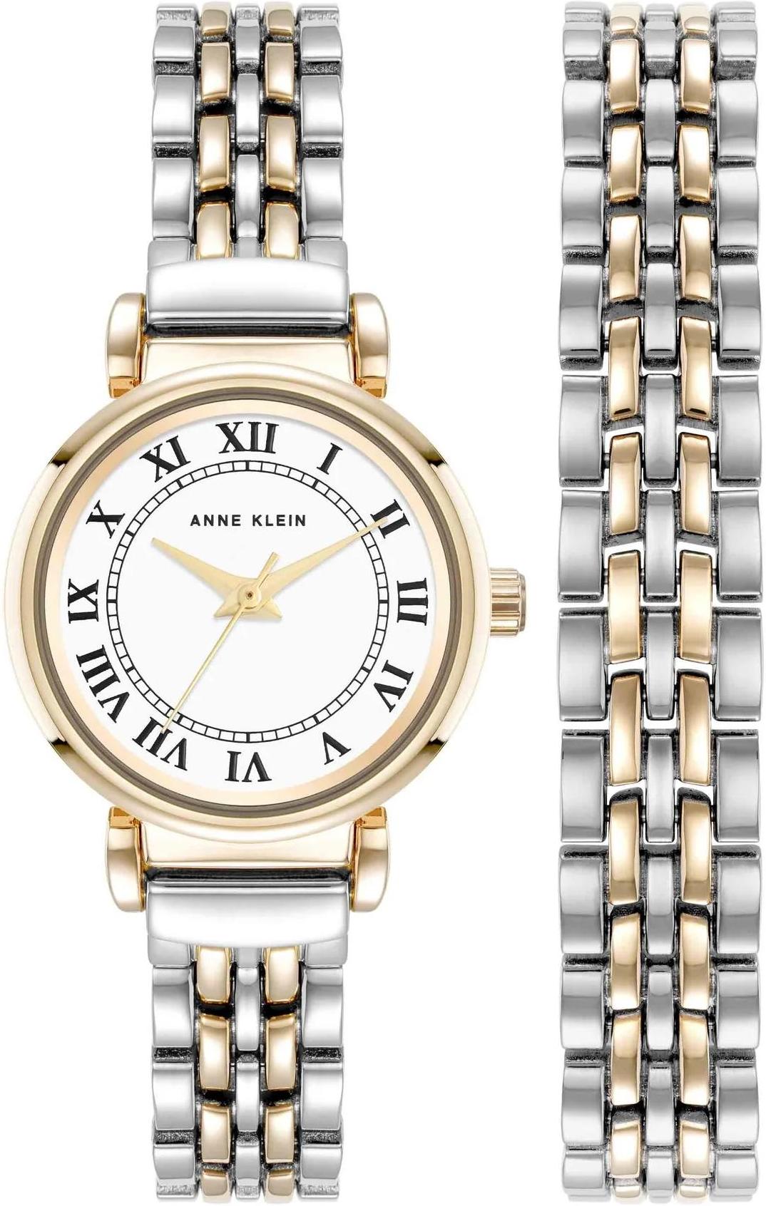 Женские наручные часы Anne Klein Daily 4145TTST. Точный кварцевый механизм с аналоговой индикацией. Браслет из нержавеющей стали. Браслет из нержавеющей стали. Прочное, устойчивое к царапинам минеральное стекло защищает часы от повреждений. Часы являются водонепроницаемыми до 10 Бар. Цвет циферблата: Серебристый. Цвет циферблата: Желтое золото. Цвет корпуса: Белый. Толщина: 7 мм. Гарантия: 2 года.