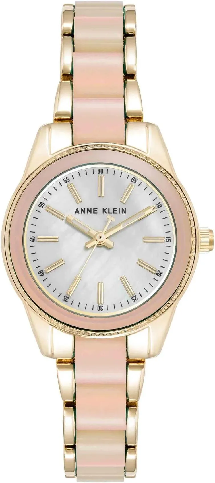 Женские наручные часы Anne Klein Plastic 3212IRGB. Точный кварцевый механизм с аналоговой индикацией. Браслет из нержавеющей стали. Полимерный ремешок. Натуральный полимерный материал является идеальным для изготовления ремешка благодаря своей чрезвычайной прочности и гибкости. Браслет из нержавеющей стали. Прочное, устойчивое к царапинам минеральное стекло защищает часы от повреждений. Часы являются водонепроницаемыми до 3 Бар. Цвет циферблата: Розовое золото. Цвет циферблата: Желтое золото. Цвет корпуса: Белый. На стрелки и отметки нанесен светонакопительный состав, благодаря этому считывать информацию с циферблата возможно и в темноте. Толщина: 8 мм. Гарантия: 2 года.