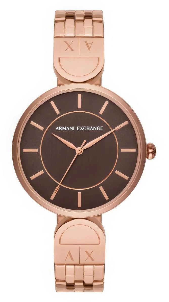 Женские наручные часы Armani Exchange Brooke AX5384. Точный кварцевый механизм с аналоговой индикацией. Корпус изготовлен из высококачественной нержавеющей стали 316L с высокими антикоррозийными свойствами. Браслет из нержавеющей стали. Прочное, устойчивое к царапинам минеральное стекло защищает часы от повреждений. Часы являются водонепроницаемыми до 5 Бар. Цвет корпуса: Розовое золото. Цвет циферблата: Коричневый. Ширина (с заводной головкой): 38мм. Толщина: 8мм. Гарантия: 2 года.