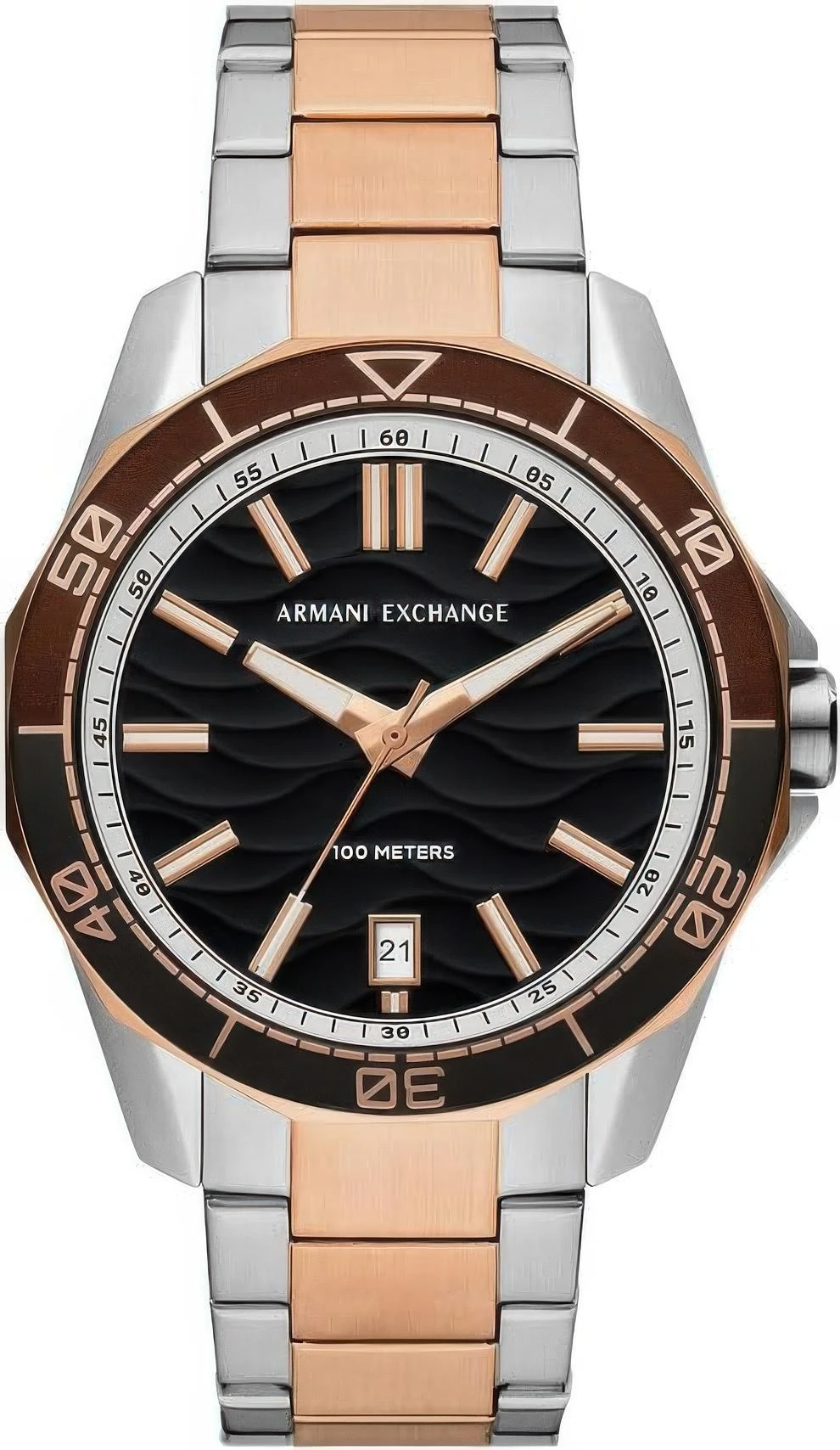 Мужские наручные часы Armani Exchange Spencer AX1962. Точный кварцевый механизм с аналоговой индикацией. Браслет из нержавеющей стали. После настройки автоматический календарь всегда отображает точную дату. Браслет из нержавеющей стали. Прочное, устойчивое к царапинам минеральное стекло защищает часы от повреждений. На циферблате отображается текущее число месяца. Часы являются водонепроницаемыми до 10 Бар. Цвет циферблата: Коричневый. Цвет циферблата: Серебристый. Цвет циферблата: Розовое золото. Цвет корпуса: Черный. На стрелки и отметки нанесен светонакопительный состав, благодаря этому считывать информацию с циферблата возможно и в темноте. Толщина: 12 мм. Гарантия: 2 года.