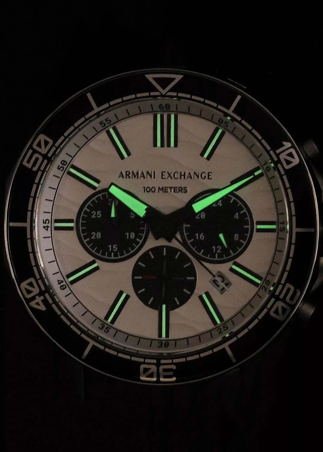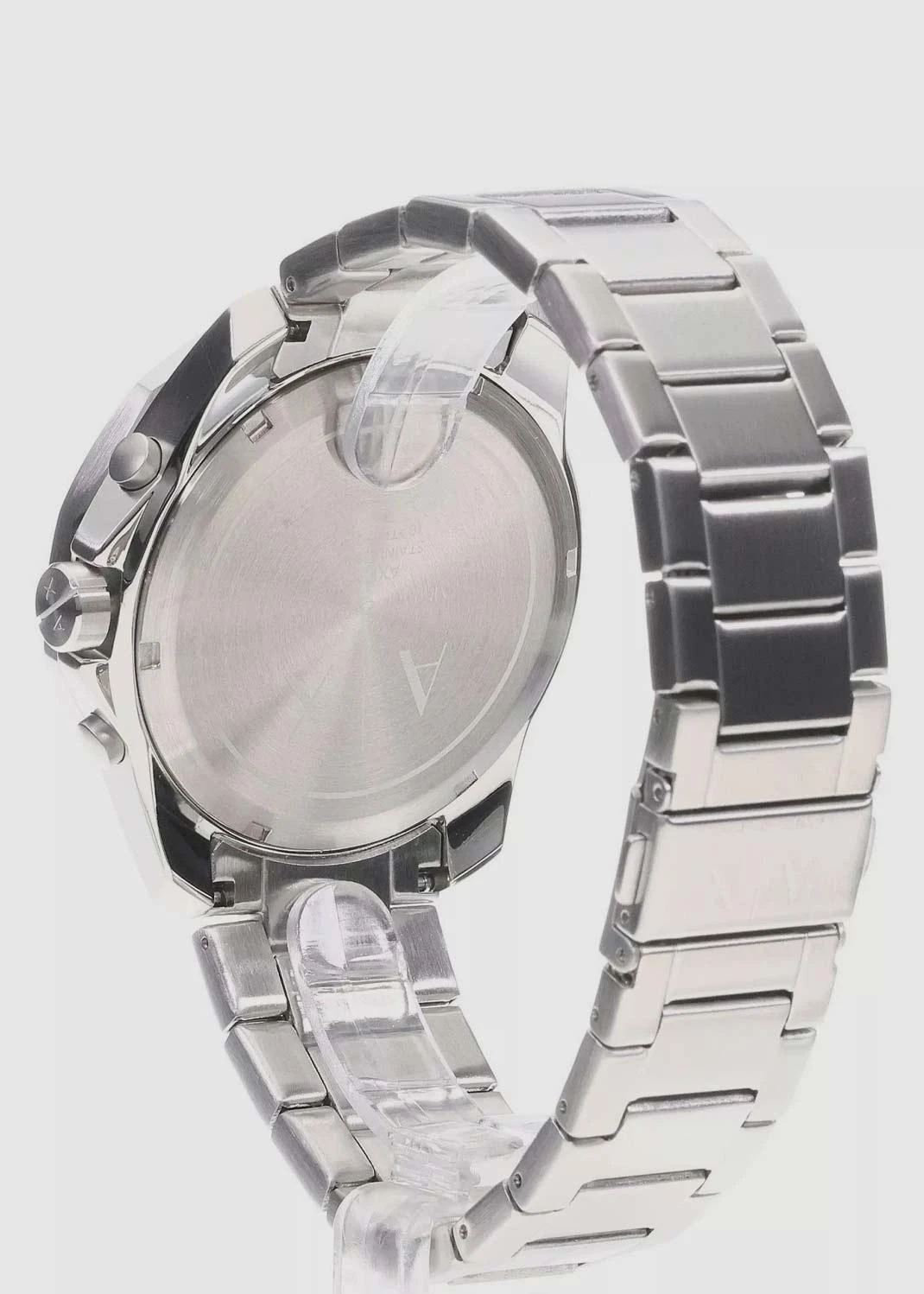 Мужские кварцевые часы-хронограф с секундомером. 12-ти и 24-х часовой формат времени. Стальной корпус. Безель с минутной шкалой. Текстурированный циферблат с метками в виде штрихов защищён минеральным стеклом. Окошко даты находится между часовыми отметками 4 и 5. Гладкая заводная головка с защитой. Завинчивающаяся задняя крышка. Браслет с раскладывающейся застёжкой.
