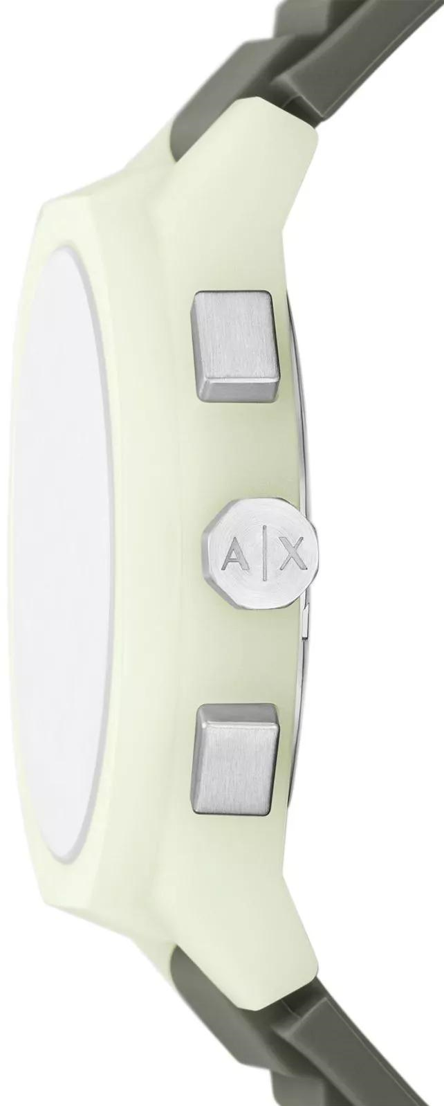 Мужские наручные часы Armani Exchange Sync AX4171. Точный кварцевый механизм с аналоговой индикацией. В отличие от механических часов, не требуют завода и работают от батареи, показывая отклонение всего несколько секунд в месяц. На стрелки и отметки нанесен светонакопительный состав, благодаря этому считывать информацию с циферблата возможно и в темноте. Полимерный ремешок. Натуральный полимерный материал является идеальным для изготовления ремешка благодаря своей чрезвычайной прочности и гибкости. Функция хронографа. Отображение времени возможно в 12-часовом или 24-часовом формате. Полимерный корпус надежно защищает часы от механических повреждений. Прочное, устойчивое к царапинам минеральное стекло защищает часы от повреждений. Часы являются водонепроницаемыми до 5 Бар. Цвет корпуса: Зеленый. Цвет циферблата: Зеленый. Толщина: 11 мм. Гарантия: 2 года.