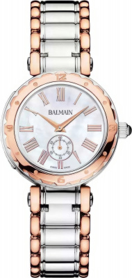 Высококачественные швейцарские часы — признак успеха и безупречного вкуса. Женские часы с круглым корпусом. Двухцветный корпус диаметром 32 мм из нержавеющей стали с PVD-покрытием цвета розового золота, прочный профиль 8,45 мм и браслет в тон обеспечат повседневную элегантность. Эти часы швейцарского производства оснащены сапфировым стеклом. Рифленый безель. Перламутровый циферблат с метками в виде римских цифр. Секундная стрелка вынесена на отдельный циферблат. Рифленая заводная головка украшена камнем в форме кабошона. Надежный стальной браслет с раскладывающейся застежкой. Водозащита 30 метров (3 АТМ/bar): минимальная защита от мелких брызг. Часы не предназначены для погружения в воду.