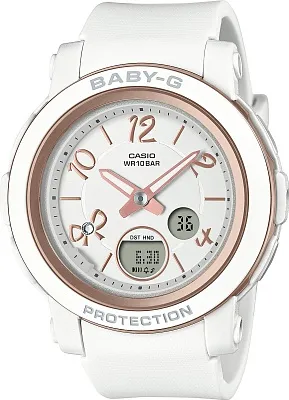Женские наручные часы Casio Baby-G BA-110XRG-4A. Точный кварцевый механизм с аналого-цифровой индикацией. Полимерный корпус надежно защищает часы от механических повреждений. Светодиодная подсветка. На циферблате отображается текущее число, месяц и день недели. Ударопрочная конструкция часов защищает от ударов и вибрации. Функция хронографа. Функция будильника. Аккумулятор обеспечивает часы достаточным питанием приблизительно на 2 года. Отображение текущего времени в основных городах и конкретных областях по всему миру. После настройки автоматический календарь всегда отображает точную дату. Отображение времени возможно в 12-часовом или 24-часовом формате. Полимерный ремешок. Натуральный полимерный материал является идеальным для изготовления ремешка благодаря своей чрезвычайной прочности и гибкости. Прочное, устойчивое к царапинам минеральное стекло защищает часы от повреждений.Часы являются водонепроницаемыми до 10 Бар. Цвет корпуса: Розовый. Цвет циферблата: Белый. Ширина (с заводной головкой): 46мм. Толщина: 16мм. Гарантия: 2 года.