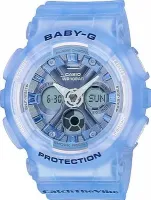Женские наручные часы Casio Baby-G BA-130CV-2A. Точный кварцевый механизм с аналого-цифровой индикацией. Полимерный ремешок. Натуральный полимерный материал является идеальным для изготовления ремешка благодаря своей чрезвычайной прочности и гибкости. После настройки автоматический календарь всегда отображает точную дату. Для подсветки дисплея используется светодиод, а так же имеет функцию автоматического включения подсветки, если Вы наклоните часы к своему лицу. Аккумулятор обеспечивает часы достаточным питанием приблизительно на 2 года. Функция будильника. Функция хронографа. Отображение текущего времени в основных городах и конкретных областях по всему миру. Функция таймера. Таймеры обратного отсчета напомнят Вам о текущих или особенных событиях, издав звуковой сигнал в установленное время. Ударопрочная конструкция часов защищает от ударов и вибрации. Отображение времени возможно в 12-часовом или 24-часовом формате. Полимерный ремешок. Натуральный полимерный материал является идеальным для изготовления ремешка благодаря своей чрезвычайной прочности и гибкости. Прочное, устойчивое к царапинам минеральное стекло защищает часы от повреждений. На циферблате отображается текущее число, месяц и день недели. Часы являются водонепроницаемыми до 10 Бар. Цвет циферблата: Синий. Цвет корпуса: Синий. Светодиодная подсветка. На стрелки и отметки нанесен светонакопительный состав, благодаря этому считывать информацию с циферблата возможно и в темноте. Толщина: 16 мм. Гарантия: 2 года.