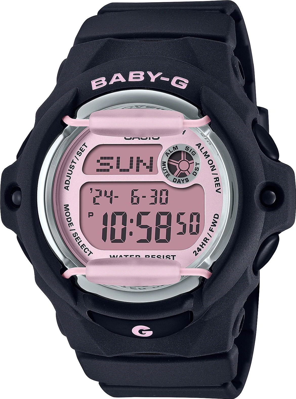 Cвежая модель из одной из самых популярных серий женских часов BABY-G BG-169. Эти черные цифровые бэбики с нежно-розовым циферблатом и хромированным безелем без сомнения украсят любое, даже самое изящное женское запястье. Противоударный корпус защищает механизм от ударов и вибрации. Электролюминесцентная подсветка обеспечивает равномерное освещение всего циферблата, облегчая считывание данных. Послесвечение. Цвет подсветки: белый. 12-ти и 24-х часовой формат времени. Секундомер с точностью показаний 1/100с и временем измерения 24ч. SPLIT-хронограф. Таймер обратного отсчета от 1мин до 24ч. Мировое время – 30 городов (29 часовых поясов). Автоматический переход на зимнее и летнее время, возможность включения/отключения данной функции. Счетчик дней - отображает число дней между текущей и какой-либо другой датой. Записная книжка на 25 ячеек памяти для записи телефонных номеров и дополнительных данных о владельцах, каждая запись может включать в себя текст из 8 букв и 12 цифр. Функция включения/отключения звука. Стальной безель. Батарея рассчитана на 3 года. Стальная задняя крышка крепится на 4-х винтах. Ремешок с классической застежкой.