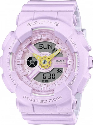 Женские наручные часы Casio Baby-G BGA-210-7B2. Точный кварцевый механизм с аналого-цифровой индикацией. Полимерный корпус надежно защищает часы от механических повреждений. На стрелки и отметки нанесен светонакопительный состав, благодаря этому считывать информацию с циферблата возможно и в темноте. На циферблате отображается текущее число, месяц и день недели. Ударопрочная конструкция часов защищает от ударов и вибрации. Функция хронографа. Функция таймера. Таймеры обратного отсчета напомнят Вам о текущих или особенных событиях, издав звуковой сигнал в установленное время. Функция будильника. Аккумулятор обеспечивает часы достаточным питанием приблизительно на 2 года. Отображение текущего времени в основных городах и конкретных областях по всему миру. Отображение времени возможно в 12-часовом или 24-часовом формате. После настройки автоматический календарь всегда отображает точную дату. Полимерный ремешок. Натуральный полимерный материал является идеальным для изготовления ремешка благодаря своей чрезвычайной прочности и гибкости. Прочное, устойчивое к царапинам минеральное стекло защищает часы от повреждений.Часы являются водонепроницаемыми до 10 Бар. Цвет корпуса: Белый. Цвет циферблата: Серебристый. Ширина (с заводной головкой): 46мм. Толщина: 15мм. Гарантия: 2 года.