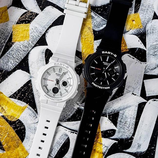 Противоударные и водостойкие часы Beach Traveler Series BGA-255 для девушек со всеми преимуществами Baby-G. Фирменный комбинированный корпус. Японский многофункциональный механизм со светодиодной неоновой подсветкой Blacklight LED.