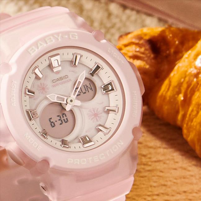 Женские наручные часы Casio Baby-G BGA-270FL-4A. Точный кварцевый механизм с аналоговой индикацией. Полимерный ремешок. Натуральный полимерный материал является идеальным для изготовления ремешка благодаря своей чрезвычайной прочности и гибкости. Отображение текущего времени в основных городах и конкретных областях по всему миру. Ударопрочная конструкция часов защищает от ударов и вибрации. Функция будильника. Функция хронографа. После настройки автоматический календарь всегда отображает точную дату. Отображение времени возможно в 12-часовом или 24-часовом формате. Аккумулятор обеспечивает часы достаточным питанием приблизительно на 3 года. Полимерный ремешок. Натуральный полимерный материал является идеальным для изготовления ремешка благодаря своей чрезвычайной прочности и гибкости. Прочное, устойчивое к царапинам минеральное стекло защищает часы от повреждений. На циферблате отображается текущее число, месяц и день недели. Часы являются водонепроницаемыми до 10 Бар. Цвет циферблата: Розовый. Цвет корпуса: Розовый. Светодиодная подсветка. На стрелки и отметки нанесен светонакопительный состав, благодаря этому считывать информацию с циферблата возможно и в темноте. Толщина: 13 мм. Гарантия: 2 года.