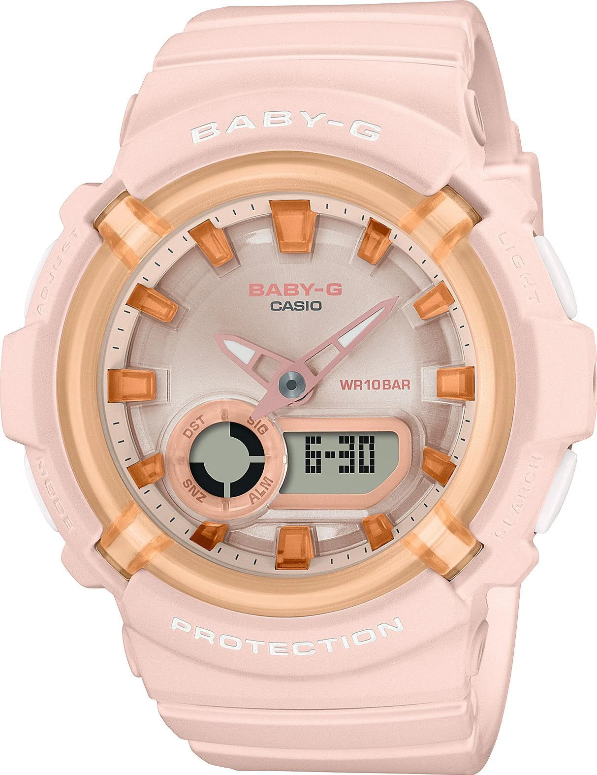 Женские наручные часы Casio Baby-G BGA-280SW-4A. Точный кварцевый механизм с аналого-цифровой индикацией. Полимерный ремешок. Натуральный полимерный материал является идеальным для изготовления ремешка благодаря своей чрезвычайной прочности и гибкости. После настройки автоматический календарь всегда отображает точную дату. Аккумулятор обеспечивает часы достаточным питанием приблизительно на 3 года. Функция будильника. Функция хронографа. Отображение текущего времени в основных городах и конкретных областях по всему миру. Функция таймера. Таймеры обратного отсчета напомнят Вам о текущих или особенных событиях, издав звуковой сигнал в установленное время. Ударопрочная конструкция часов защищает от ударов и вибрации. Отображение времени возможно в 12-часовом или 24-часовом формате. Полимерный ремешок. Натуральный полимерный материал является идеальным для изготовления ремешка благодаря своей чрезвычайной прочности и гибкости. Прочное, устойчивое к царапинам минеральное стекло защищает часы от повреждений. На циферблате отображается текущее число, месяц и день недели. Часы являются водонепроницаемыми до 10 Бар. Цвет циферблата: Розовый. Цвет корпуса: Бежевый. Светодиодная подсветка. На стрелки и отметки нанесен светонакопительный состав, благодаря этому считывать информацию с циферблата возможно и в темноте. Толщина: 15 мм. Гарантия: 2 года.