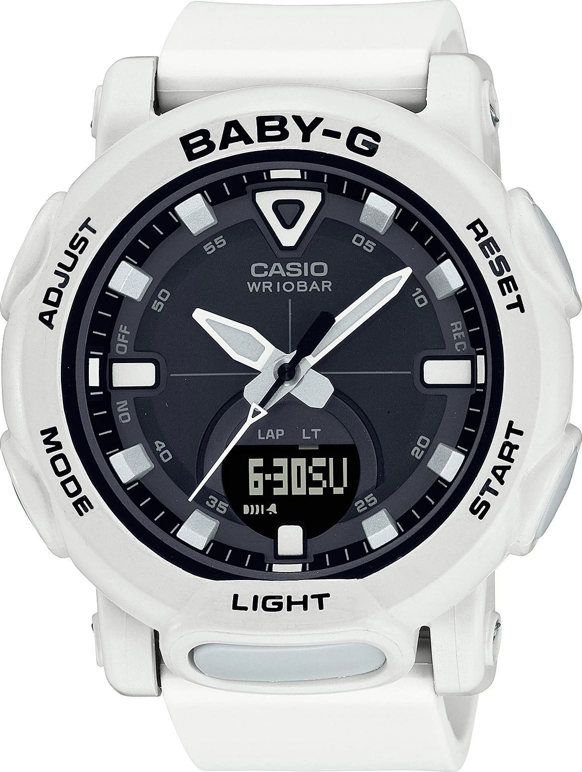 Женские наручные часы Casio Baby-G BGA-310-7A2. Точный кварцевый механизм с аналоговой индикацией. Полимерный ремешок. Натуральный полимерный материал является идеальным для изготовления ремешка благодаря своей чрезвычайной прочности и гибкости. После настройки автоматический календарь всегда отображает точную дату. Аккумулятор обеспечивает часы достаточным питанием приблизительно на 3 года. Функция будильника. Функция хронографа. Отображение текущего времени в основных городах и конкретных областях по всему миру. Функция таймера. Таймеры обратного отсчета напомнят Вам о текущих или особенных событиях, издав звуковой сигнал в установленное время. Ударопрочная конструкция часов защищает от ударов и вибрации. Отображение времени возможно в 12-часовом или 24-часовом формате. Полимерный ремешок. Натуральный полимерный материал является идеальным для изготовления ремешка благодаря своей чрезвычайной прочности и гибкости. Прочное, устойчивое к царапинам минеральное стекло защищает часы от повреждений. На циферблате отображается текущее число, месяц и день недели. Часы являются водонепроницаемыми до 10 Бар. Цвет циферблата: Белый. Цвет корпуса: Черный. Светодиодная подсветка. На стрелки и отметки нанесен светонакопительный состав, благодаря этому считывать информацию с циферблата возможно и в темноте. Толщина: 14 мм. Гарантия: 2 года.