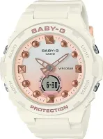 Женские наручные часы Casio Baby-G BGA-320-7A1. Точный кварцевый механизм с аналого-цифровой индикацией. Полимерный ремешок. Натуральный полимерный материал является идеальным для изготовления ремешка благодаря своей чрезвычайной прочности и гибкости. После настройки автоматический календарь всегда отображает точную дату. Аккумулятор обеспечивает часы достаточным питанием приблизительно на 3 года. Функция будильника. Функция хронографа. Отображение текущего времени в основных городах и конкретных областях по всему миру. Функция таймера. Таймеры обратного отсчета напомнят Вам о текущих или особенных событиях, издав звуковой сигнал в установленное время. Ударопрочная конструкция часов защищает от ударов и вибрации. Отображение времени возможно в 12-часовом или 24-часовом формате. Полимерный ремешок. Натуральный полимерный материал является идеальным для изготовления ремешка благодаря своей чрезвычайной прочности и гибкости. Прочное, устойчивое к царапинам минеральное стекло защищает часы от повреждений. На циферблате отображается текущее число, месяц и день недели. Часы являются водонепроницаемыми до 10 Бар. Цвет циферблата: Белый. Цвет корпуса: Розовый. Цвет корпуса: Серый. Светодиодная подсветка. На стрелки и отметки нанесен светонакопительный состав, благодаря этому считывать информацию с циферблата возможно и в темноте. Толщина: 12 мм. Гарантия: 2 года.