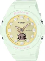 Женские наручные часы Casio Baby-G BGA-320FH-3A. Точный кварцевый механизм с аналого-цифровой индикацией. Браслет из нержавеющей стали. После настройки автоматический календарь всегда отображает точную дату. Для подсветки дисплея используется светодиод, а так же имеет функцию автоматического включения подсветки, если Вы наклоните часы к своему лицу. Функция будильника. Функция хронографа. Отображение текущего времени в основных городах и конкретных областях по всему миру. Функция таймера. Таймеры обратного отсчета напомнят Вам о текущих или особенных событиях, издав звуковой сигнал в установленное время. Ударопрочная конструкция часов защищает от ударов и вибрации. Отображение времени возможно в 12-часовом или 24-часовом формате. Браслет из нержавеющей стали. Прочное, устойчивое к царапинам минеральное стекло защищает часы от повреждений. На циферблате отображается текущее число месяца и день недели. Часы являются водонепроницаемыми до 10 Бар. Цвет циферблата: Голубой. Цвет корпуса: Желтый. Светодиодная подсветка. Высота (с ушками): 46 мм. Толщина: 12 мм. Гарантия: 2 года.