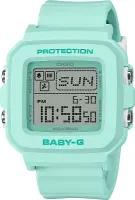 Причудливый дизайн этих часиков создаст уникальный образ любой активной девушки. Baby-G. Женские часы. Противоударный корпус защищает механизм от ударов и вибрации. Циферблат подсвечивается светодиодом. Послесвечение (2сек). Цвет подсветки: белый. При активации подсветки на экране появится случайная пиксельная анимация (серфер, танцор, дельфин, иглобрюхая рыба, собака, кошка). 12-ти и 24-х часовой формат времени. Секундомер с точностью показаний 1/100с и временем измерения 24ч. SPLIT-хронограф. Таймер обратного отсчета от 1мин до 24ч. Мировое время – 30 городов (29 часовых поясов). Функции включения/отключения летнего времени, включения/отключения звука. Батарея рассчитана на 3 года. Стальная задняя крышка крепится на 4-х винтах. Ремешок с классической застежкой.