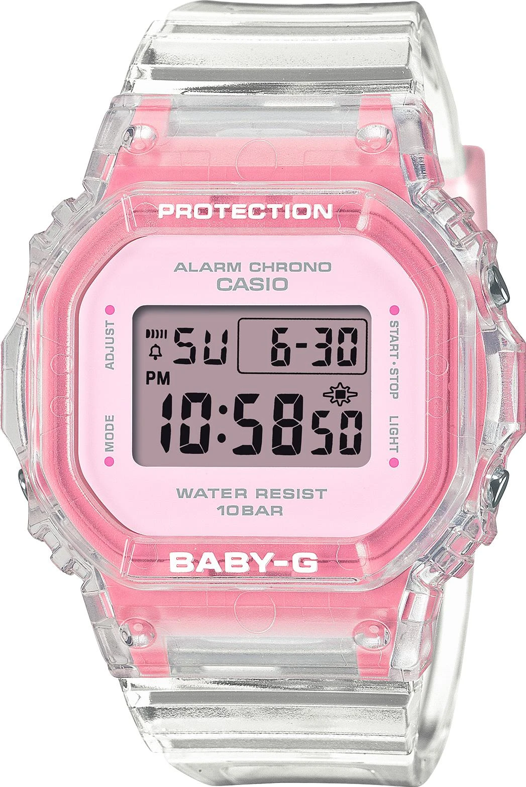 Женские наручные часы Casio Baby-G BGD-565SJ-7E. Точный кварцевый механизм с цифровой индикацей. Полимерный ремешок. Натуральный полимерный материал является идеальным для изготовления ремешка благодаря своей чрезвычайной прочности и гибкости. Ударопрочная конструкция часов защищает от ударов и вибрации. Функция будильника. Функция хронографа. Функция таймера. Таймеры обратного отсчета напомнят Вам о текущих или особенных событиях, издав звуковой сигнал в установленное время. После настройки автоматический календарь всегда отображает точную дату. Отображение времени возможно в 12-часовом или 24-часовом формате. Аккумулятор обеспечивает часы достаточным питанием приблизительно на 3 года. Полимерный ремешок. Натуральный полимерный материал является идеальным для изготовления ремешка благодаря своей чрезвычайной прочности и гибкости. Прочное, устойчивое к царапинам минеральное стекло защищает часы от повреждений. На циферблате отображается текущее число, месяц и день недели. Часы являются водонепроницаемыми до 10 Бар. Цвет циферблата: Розовый. Цвет корпуса: Розовый. Светодиодная подсветка. Толщина: 11 мм. Гарантия: 2 года.