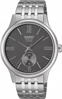 Мужские кварцевые наручные часы Casio BMS-100D-8A коллекции Beside сочетают элегантный дизайн и практичность для повседневного ношения. Модель с серым циферблатом выглядит строго и элегантно, гармонично дополняя деловой костюм или повседневный городской образ. Часы оснащены надёжным кварцевым механизмом калибра 5172, который обеспечивает точный и стабильный ход без необходимости сложного обслуживания. На субциферблате отображается время суток по 24-часовой шкале. Корпус и браслет выполнены в серебристом цвете, что подчёркивает аккуратный и сдержанный стиль модели. Установлено сапфировое стекло, устойчивое к появлению царапин и сохраняющее прозрачность циферблата на протяжении длительного времени. Водозащита WR50 (5 атм).