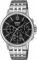 Мужские кварцевые наручные часы Casio BMS-300D-1A из коллекции Beside сочетают элегантный дизайн и практичность для повседневного и делового образа. Часы оснащены надёжным кварцевым механизмом калибра 5374, обеспечивающим точный и стабильный ход без необходимости сложного обслуживания. На субциферблатах предусмотрено отображение текущей даты, дня недели и времени суток по 24-часовой шкале, что делает модель функциональной и удобной для активного ритма жизни. Корпус и браслет выполнены из нержавеющей стали, обеспечивая прочность и долговечность. Установлено сапфировое стекло, устойчивое к появлению царапин, которое сохраняет прозрачность и аккуратный вид циферблата на протяжении долгого времени. Водонепроницаемость WR50 (5 атм).