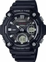 Мужские наручные часы Casio Collection AEQ-120W-1A. Точный кварцевый механизм с аналого-цифровой индикацией. Полимерный корпус надежно защищает часы от механических повреждений. На стрелки и отметки нанесен светонакопительный состав, благодаря этому считывать информацию с циферблата возможно и в темноте. На циферблате отображается текущее число, месяц и день недели. Ударопрочная конструкция часов защищает от ударов и вибрации. Функция хронографа. Функция будильника. Отображение текущего времени в основных городах и конкретных областях по всему миру. После настройки автоматический календарь всегда отображает точную дату. Отображение времени возможно в 12-часовом или 24-часовом формате. Полимерный ремешок. Натуральный полимерный материал является идеальным для изготовления ремешка благодаря своей чрезвычайной прочности и гибкости. Органическое стекло. Часы являются водонепроницаемыми до 10 Бар. Цвет корпуса: Черный. Цвет циферблата: Синий. Ширина (с заводной головкой): 53мм. Толщина: 17мм. Гарантия: 2 года. Другие наименования модели: AEQ-120W-1AVD, AEQ-120W-1AVEF.