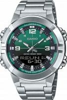 Мужские наручные часы Casio Collection AMW-870DA-3A. Точный кварцевый механизм с аналого-цифровой индикацией. Браслет из нержавеющей стали. После настройки автоматический календарь всегда отображает точную дату. Аккумулятор обеспечивает часы достаточным питанием приблизительно на 10 лет. Функция будильника. Ежечасный сигнал. Функция хронографа. Отображение текущего времени в основных городах и конкретных областях по всему миру. Функция таймера. Таймеры обратного отсчета напомнят Вам о текущих или особенных событиях, издав звуковой сигнал в установленное время. Отображение времени возможно в 12-часовом или 24-часовом формате. Записная книжка. Сохраненные имена и телефонные номера всегда под рукой благодаря встроенной базе данных. Браслет из нержавеющей стали. Прочное, устойчивое к царапинам минеральное стекло защищает часы от повреждений. На циферблате отображается текущее число, месяц и день недели. Часы являются водонепроницаемыми до 5 Бар. Цвет циферблата: Серебристый. Цвет корпуса: Зеленый. Цвет корпуса: Черный. Светодиодная подсветка. Высота (с ушками): 52 мм. Толщина: 12 мм. Гарантия: 2 года.