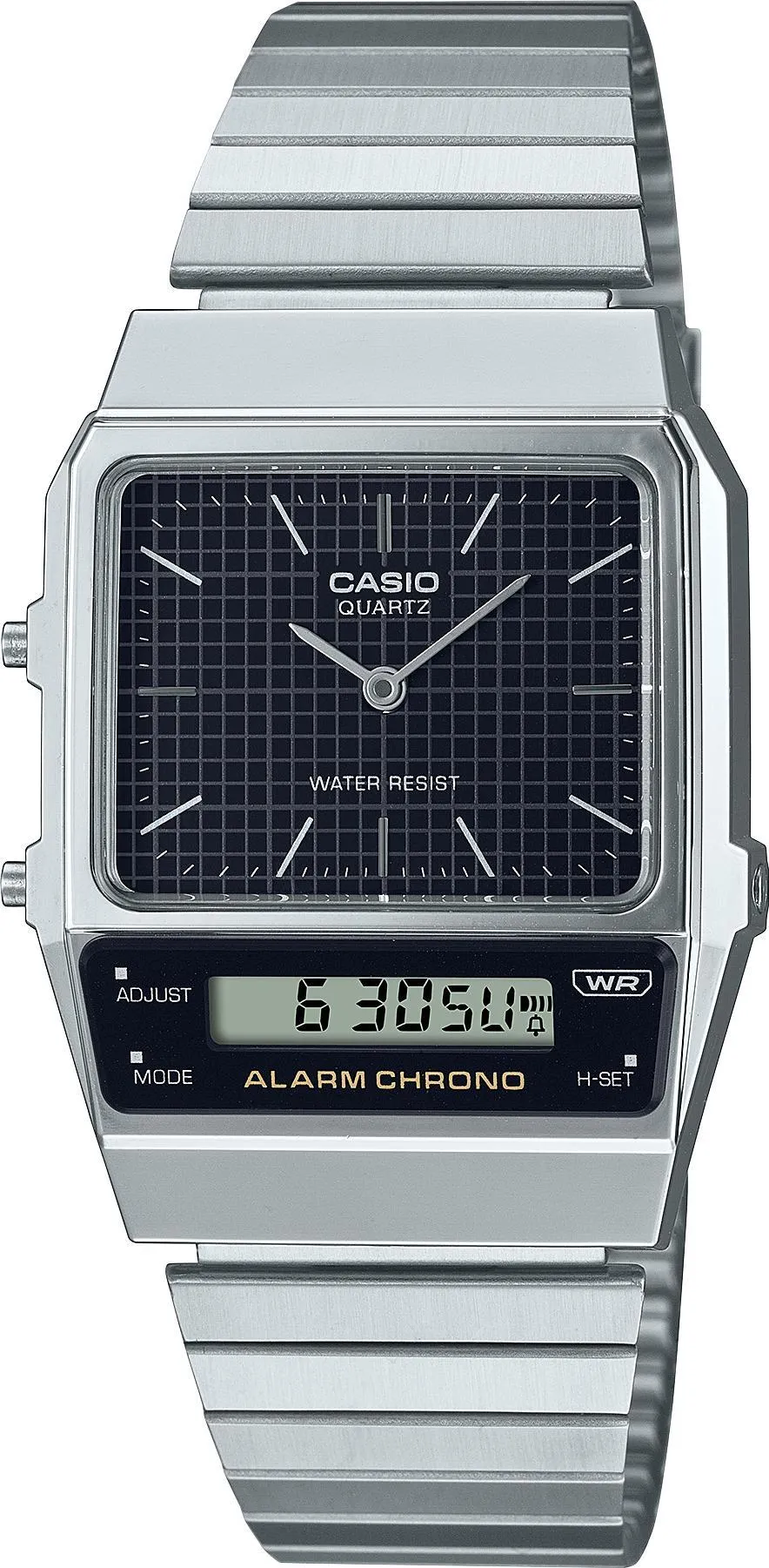 Мужские наручные часы Casio Collection AQ-800E-1A. Точный кварцевый механизм с аналого-цифровой индикацией. Корпус изготовлен из высококачественной нержавеющей стали 316L с высокими антикоррозийными свойствами. На циферблате отображается текущее число, месяц и день недели. Функция хронографа. Функция будильника. Аккумулятор обеспечивает часы достаточным питанием приблизительно на 3 года. После настройки автоматический календарь всегда отображает точную дату. Отображение времени возможно в 12-часовом или 24-часовом формате. Браслет из нержавеющей стали. Органическое стекло. Часы являются водонепроницаемыми до 3 Бар. Цвет корпуса: Серебристый. Цвет циферблата: Черный. Ширина (с заводной головкой): 41мм. Толщина: 9мм. Гарантия: 2 года. Другие наименования модели: AQ-800E-1AEF, AQ-800E-1AD.