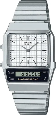Удобные часы в ретро-стиле от Casio несомненно порадуют вас своей функциональностью. Одинаково хорошо подойдут и мужчинам и женщинам. 12-ти и 24-х часовой формат времени. Секундомер с точностью показаний 1/100с и временем измерения 1ч. Одновременное отображение времени двух часовых поясов. Батарея рассчитана на 3 года. Точность хода не хуже ±30 сек./месяц. Водонепроницаемость WR30. Стальной браслет с регулируемой застежкой. Габариты корпуса: 40,7x32,1x8,7 мм.