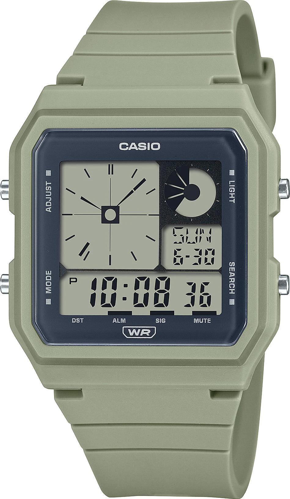 Мужские наручные часы Casio Collection LF-20W-3A. Точный кварцевый механизм с цифровой индикацией. Полимерный корпус надежно защищает часы от механических повреждений. Светодиодная подсветка. На циферблате отображается текущее число, месяц и день недели. Ударопрочная конструкция часов защищает от ударов и вибрации. Функция хронографа. Функция будильника. Аккумулятор обеспечивает часы достаточным питанием приблизительно на 3 года. Отображение текущего времени в основных городах и конкретных областях по всему миру. После настройки автоматический календарь всегда отображает точную дату. Отображение времени возможно в 12-часовом или 24-часовом формате. Ударопрочная конструкция часов защищает от ударов и вибрации. Функция хронографа. Функция будильника. Аккумулятор обеспечивает часы достаточным питанием приблизительно на 3 года. Отображение текущего времени в основных городах и конкретных областях по всему миру. После настройки автоматический календарь всегда отображает точную дату. Отображение времени возможно в 12-часовом или 24-часовом формате. Полимерный ремешок. Натуральный полимерный материал является идеальным для изготовления ремешка благодаря своей чрезвычайной прочности и гибкости. Органическое стекло. Часы являются водонепроницаемыми до 3 Бар. Цвет корпуса: Бежевый. Цвет циферблата: Черный. Ширина (с заводной головкой): 38мм. Толщина: 9мм. Гарантия: 2 года. Другие наименования модели: LF-20W-3AD.