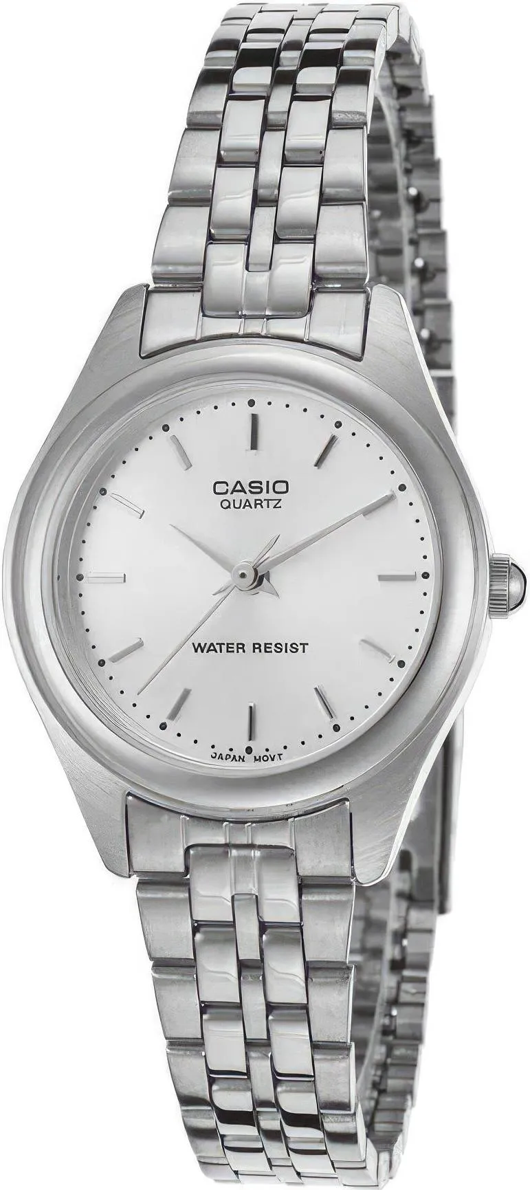 Женские наручные часы с центральной секундной стрелкой в круглом стальном корпусе, на стальном браслете.