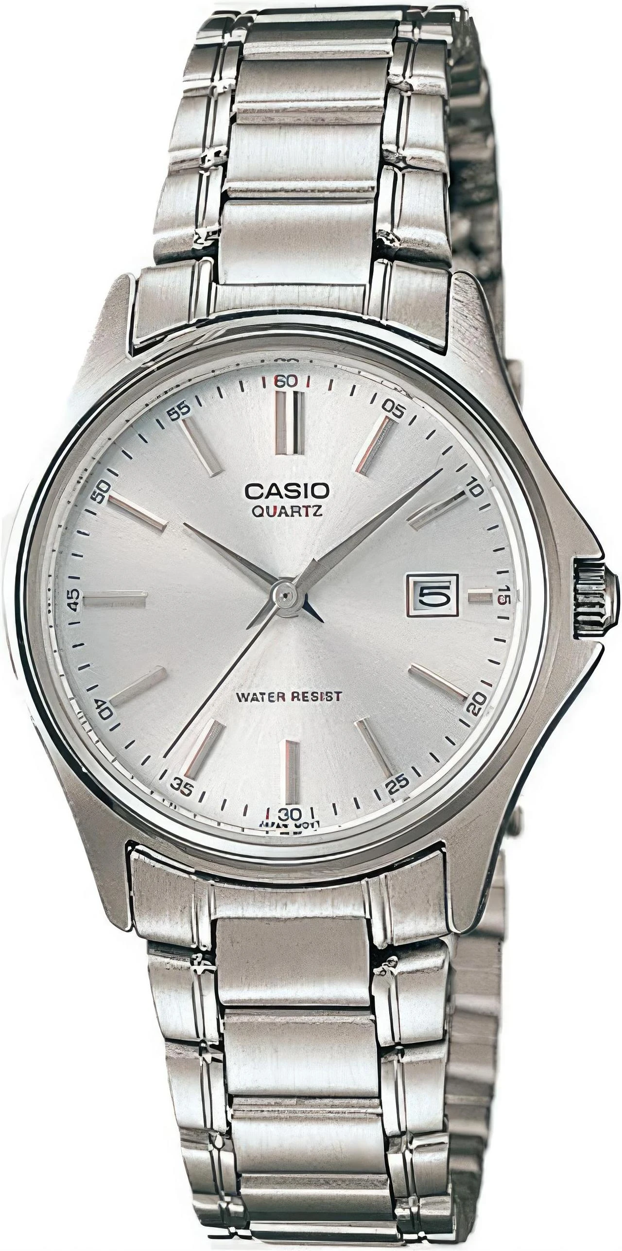 Женские наручные часы Casio Collection LTP-1183A-7A. Точный кварцевый механизм с аналоговой индикацией. Корпус изготовлен из высококачественной нержавеющей стали 316L с высокими антикоррозийными свойствами. На циферблате отображается текущее число месяца. Браслет из нержавеющей стали. Прочное, устойчивое к царапинам минеральное стекло защищает часы от повреждений. Часы являются водонепроницаемыми до 3 Бар. Цвет корпуса: Серебристый. Цвет циферблата: Серебристый. Ширина (с заводной головкой): 27мм. Толщина: 9мм. Гарантия: 2 года.