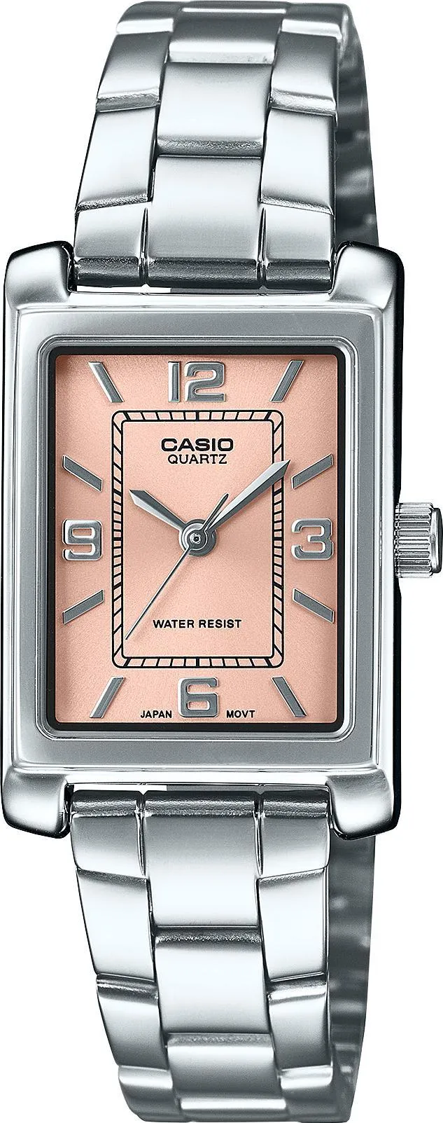 Женские наручные часы Casio Collection LTP-1234DD-4A. Точный кварцевый механизм с аналоговой индикацией. Браслет из нержавеющей стали. Браслет из нержавеющей стали. Прочное, устойчивое к царапинам минеральное стекло защищает часы от повреждений. Часы являются водонепроницаемыми до 3 Бар. Цвет циферблата: Серебристый. Цвет корпуса: Бежевый. Высота (с ушками): 32 мм. Толщина: 7 мм. Гарантия: 2 года.