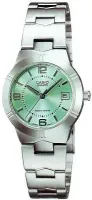 Женские наручные часы Casio Collection LTP-1241D-3A. Точный кварцевый механизм с аналоговой индикацией. Корпус изготовлен из высококачественной нержавеющей стали 316L с высокими антикоррозийными свойствами. На циферблате отображается текущее число месяца. Браслет из нержавеющей стали. Прочное, устойчивое к царапинам минеральное стекло защищает часы от повреждений. Часы являются водонепроницаемыми до 3 Бар. Цвет корпуса: Серебристый. Цвет циферблата: Зеленый. Ширина (с заводной головкой): 25мм. Толщина: 7мм. Гарантия: 2 года.